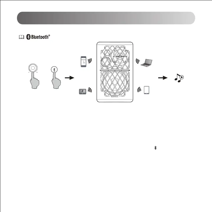 1. Ligue os altifalantes passe para o modo Bluetooth premindo o botão Bluetooth no controlo remoto ou prima o