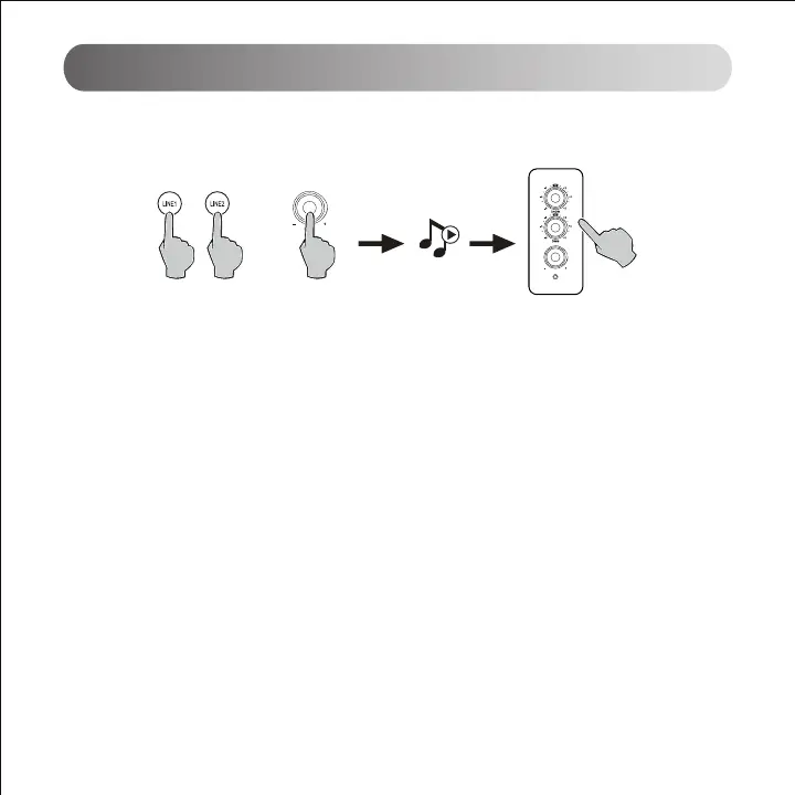 1. Press the master volume control on the active speaker or press the "LINE1"/"LINE2" button on the remote
