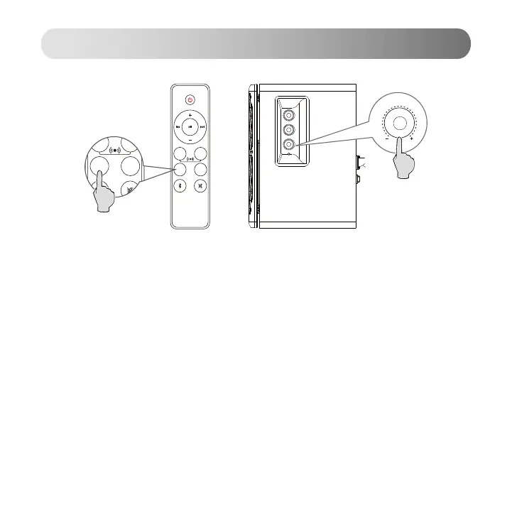 アクティブスピーカーの側面にある「volume/input」ダイアルを押すか、リモコンの