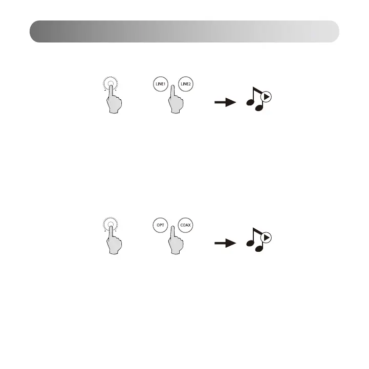 Premere il tasto “LINE1” o “LINE2” sul telecomando o premere la manopola del volume sul pannello posteriore dell’altoparlante
