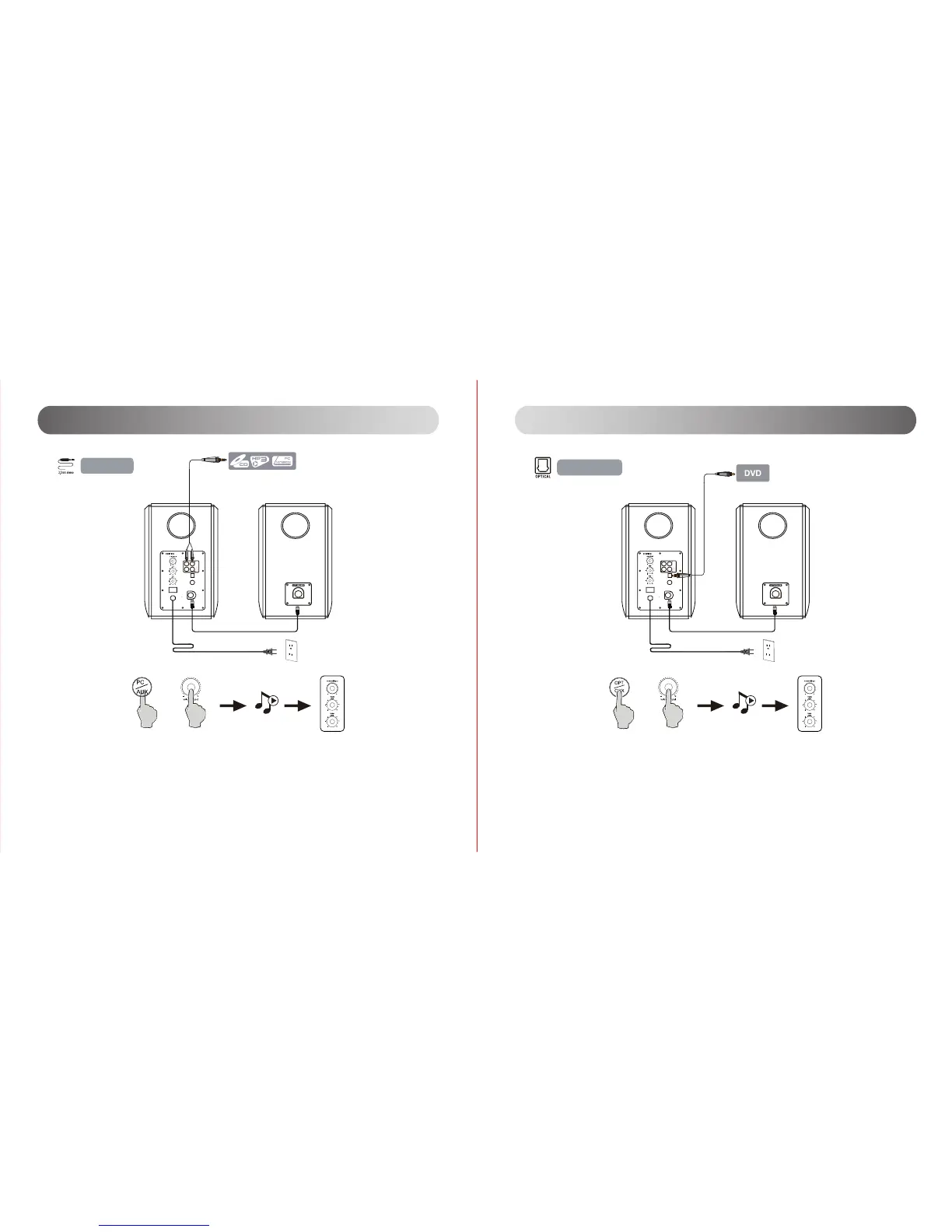 1. Prima o botão do volume principal na coluna ativa ou prima p botão “OPT/COX” (ótico/coaxial) no controlo remoto
