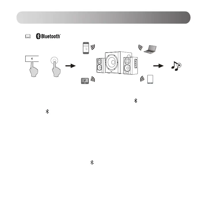 1. Drücken Sie zur Auswahl des Bluetooth-Eingangsmodus entweder die Taste „ “ auf der Fernbedienung oder