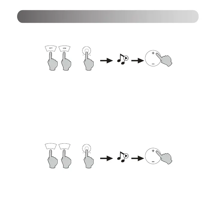 1. Prima o botão “OPT/COX” no controlo remoto ou o botão do ajuste do volume/seletor de entrada no altifalante