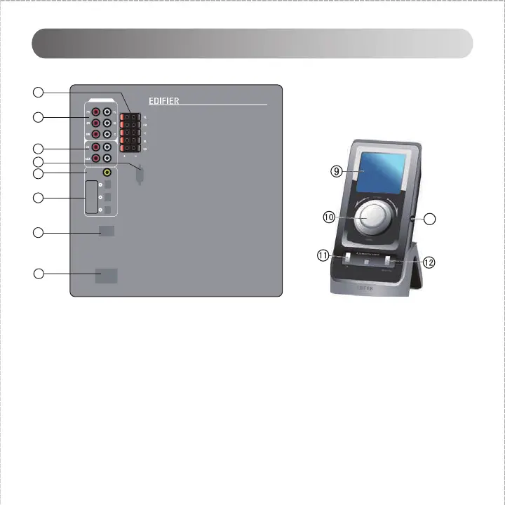 2. Orificios de conectores de entrada de canales 5.1