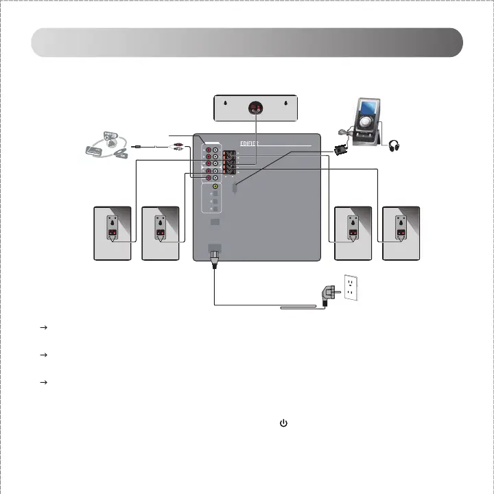 Schließen Sie die Satellitenlautsprecher an die „Lautsprecherausgang“-Buchsen auf der Rückseite des Subwoofers