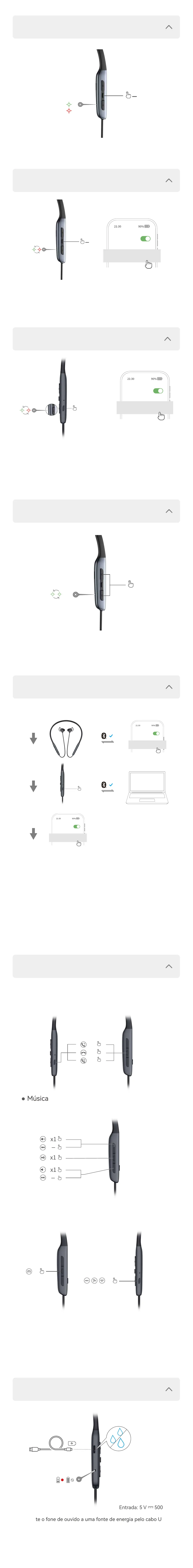 1. Uma vez ligados, os fones de ouvido entrarão automaticamente no