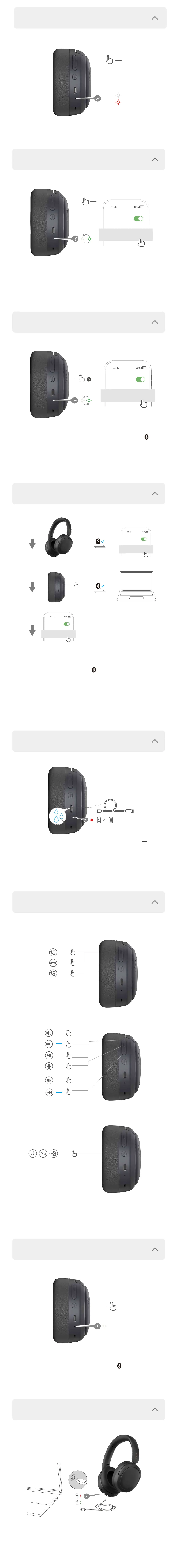 2. Quando estiver carregando com um cabo USB-C, o produto é usado na função de headphones