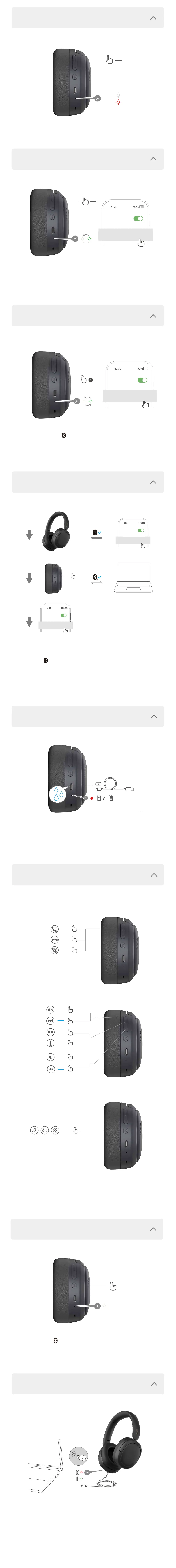 注意:再次開機,耳機可自動回連最後一次連接過的兩臺設備。