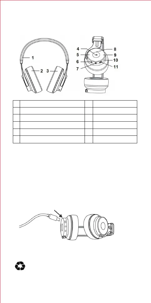 1. Connect micro USB charging port on the headphone to USB power