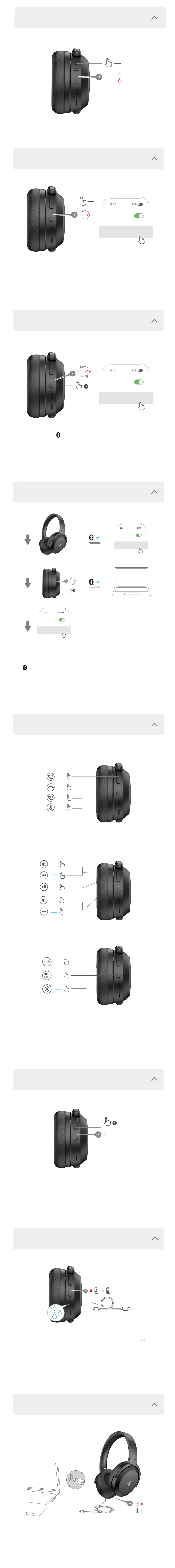 1. 製品の電源を入れると、ヘッドホンは自動的にBluetoothペアリング