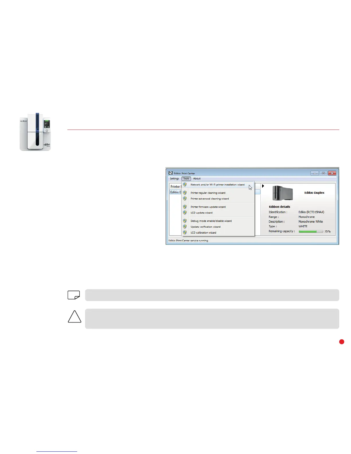 The Edikio Duplex printer has the benefit of a TCP/IP network connection solution. To connect your printer, we recommend using the wizard