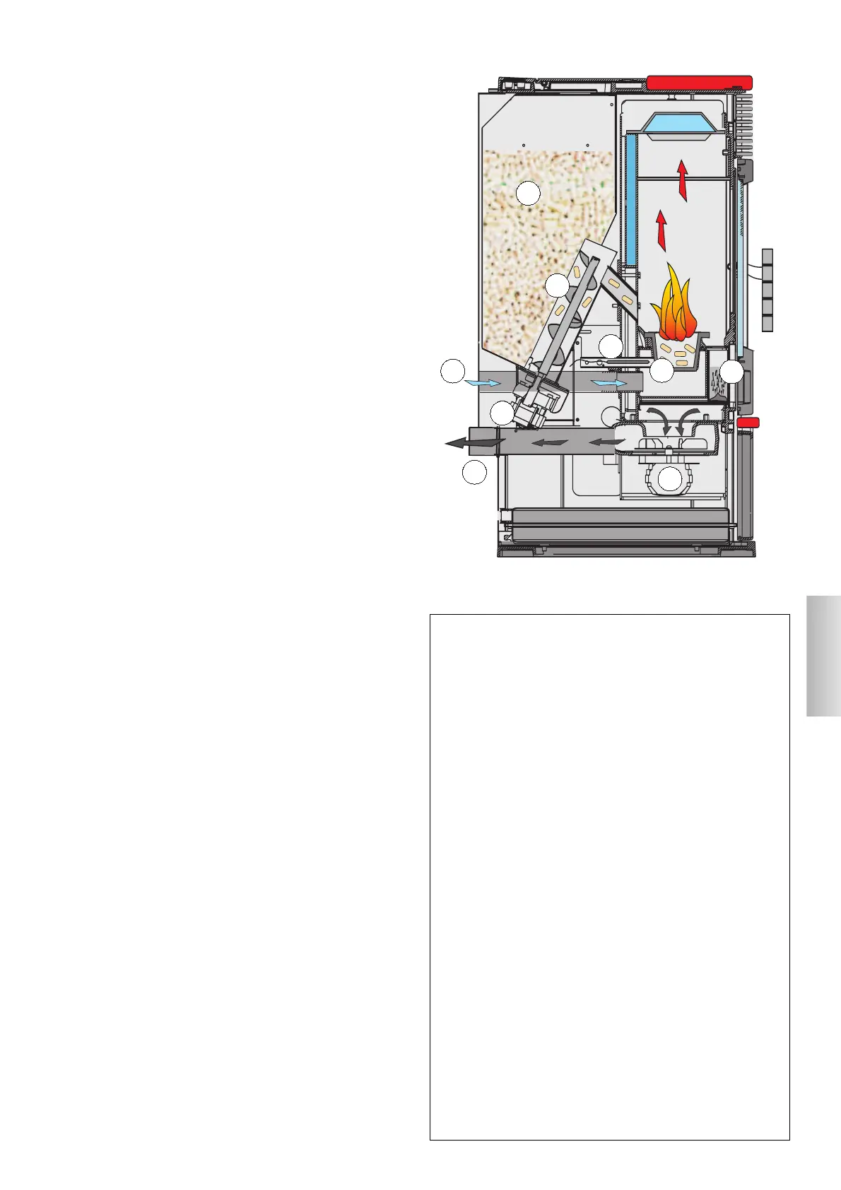 El combustible (pellet) se recoge del depósito (A) y, a través