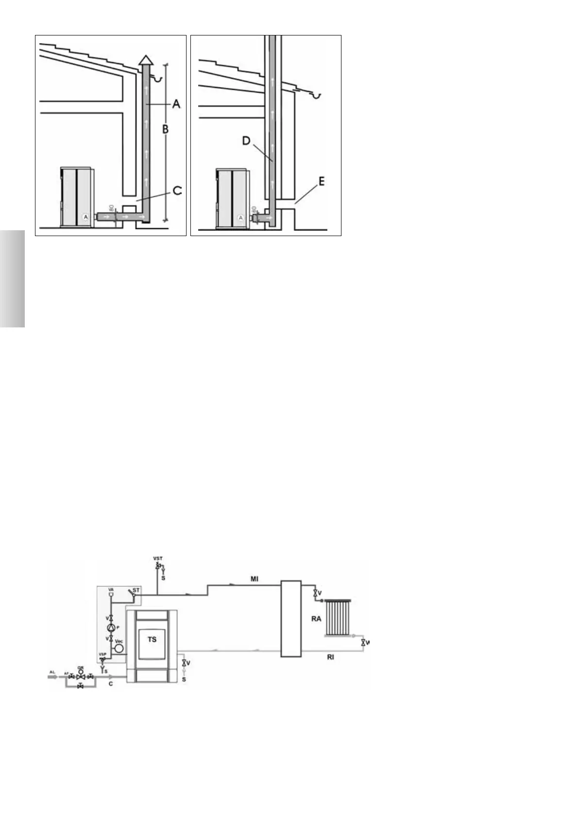 Bedarf eine spätere Versetzung des Heizofens erlauben (z. B. ein erster Schlauchabschnitt von mindestens 0,5 m Länge).