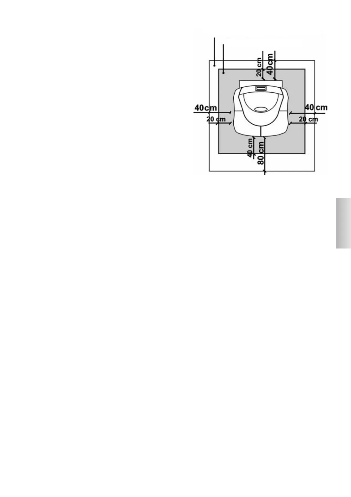 -aan de zijkanten en aan de achterkant een minimale afstand van 40 cm in acht nemen t.a.v. ontvlambaar materiaal.