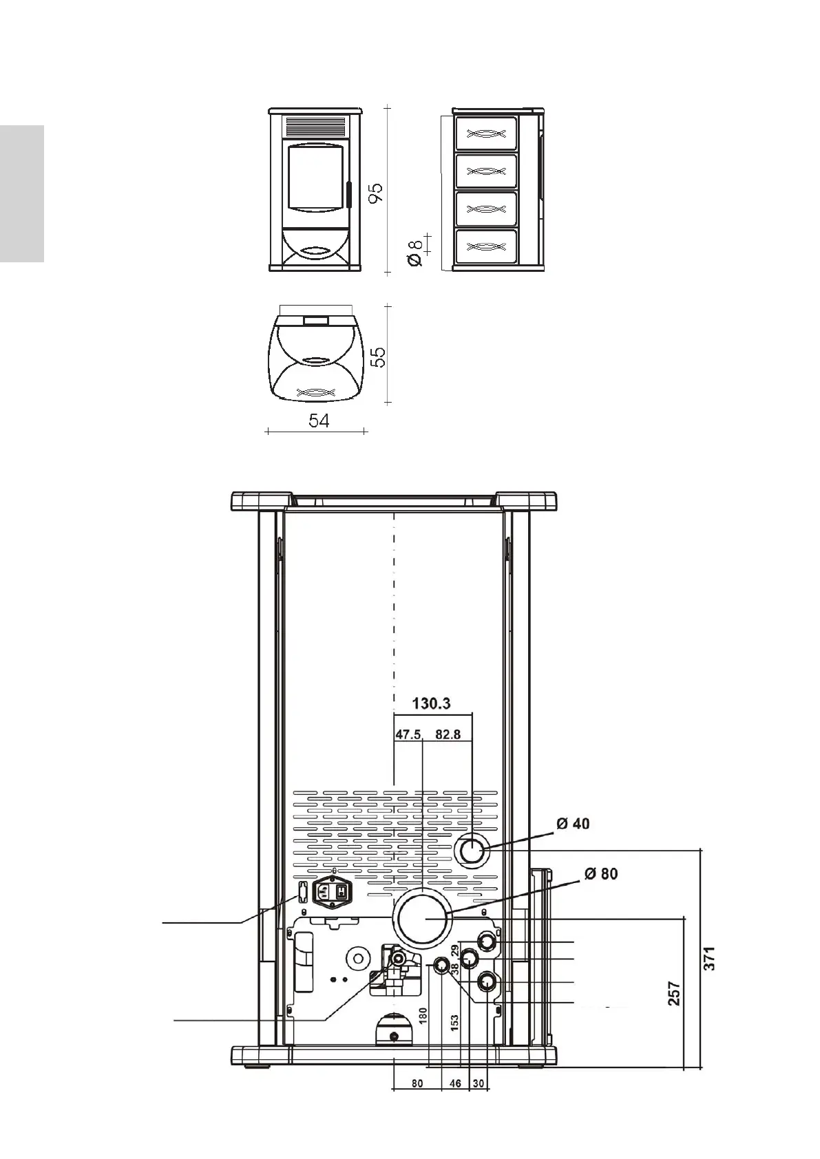 DIMENSIONS AND POSITIONS OF INLETS AND OUTLETS