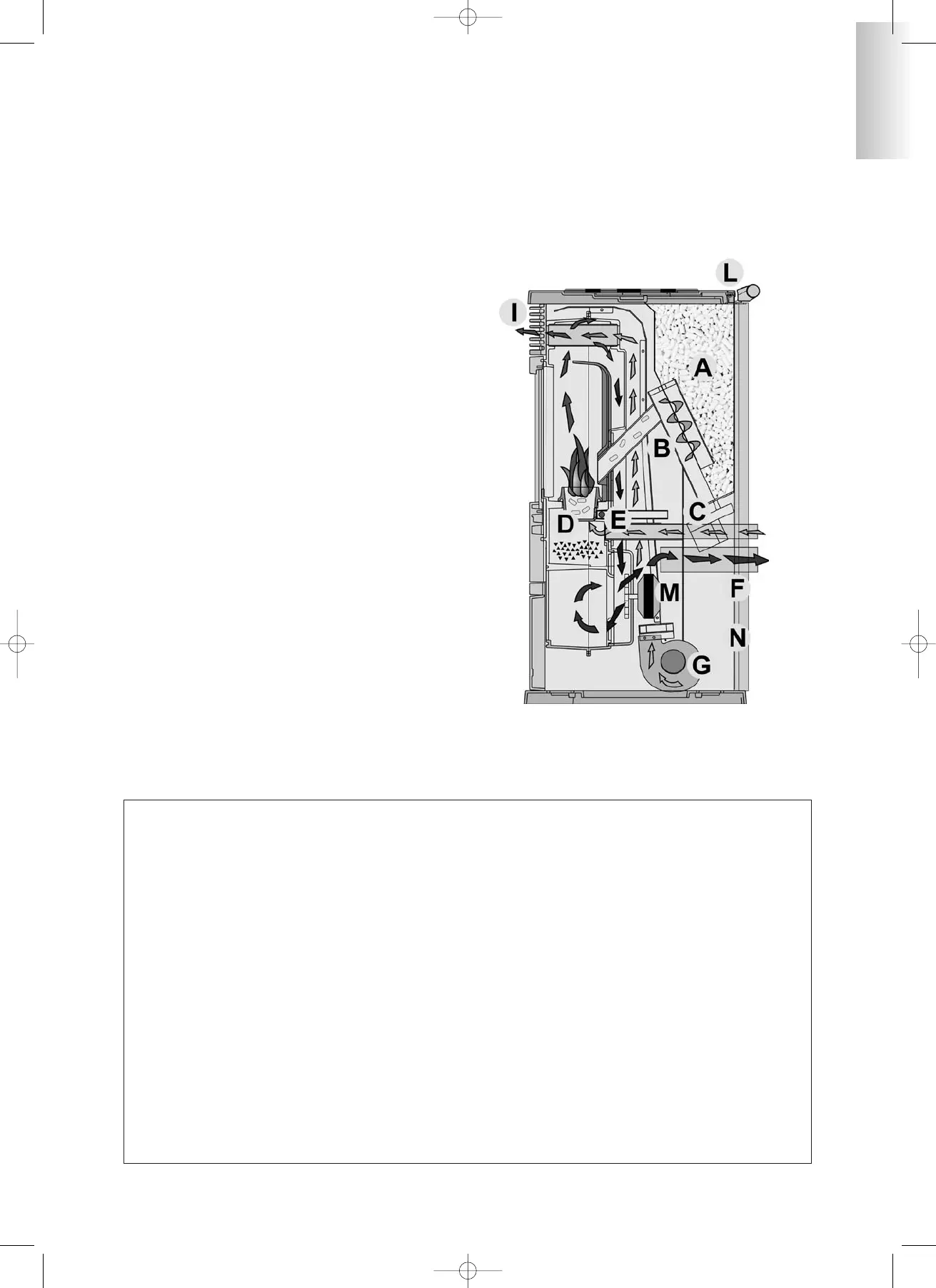 focolare tramite lo stesso ventilatore centrifugo (M), ed