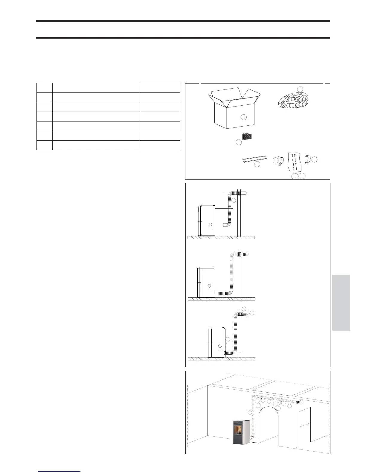 - Installeer de eindopening (c) in de te verwarmen ruimte en de