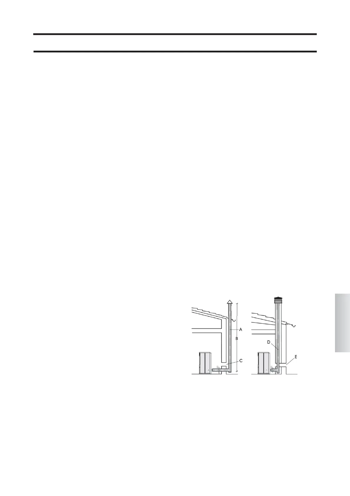 de afvoer niet in een schoorsteen uitkomt) een verticaal deel