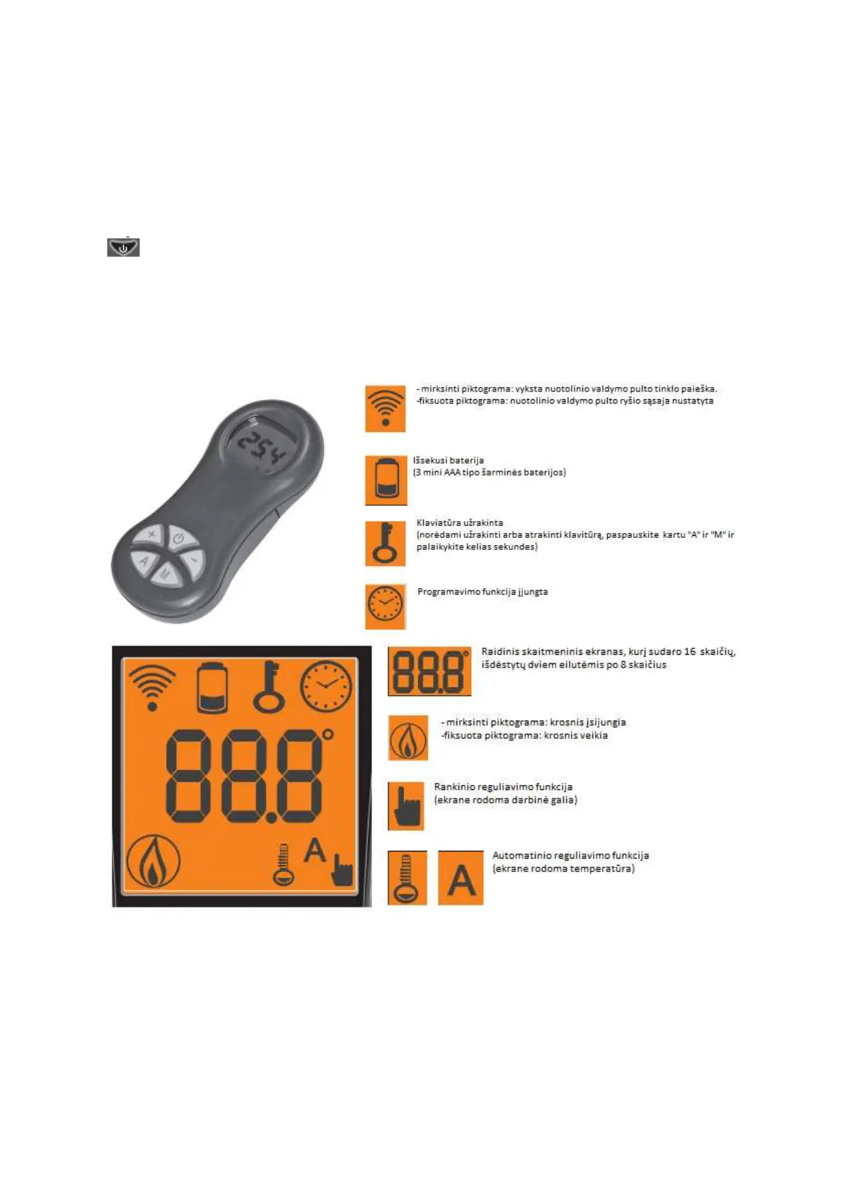 Mygtukų ir ekrano paaiškinimai