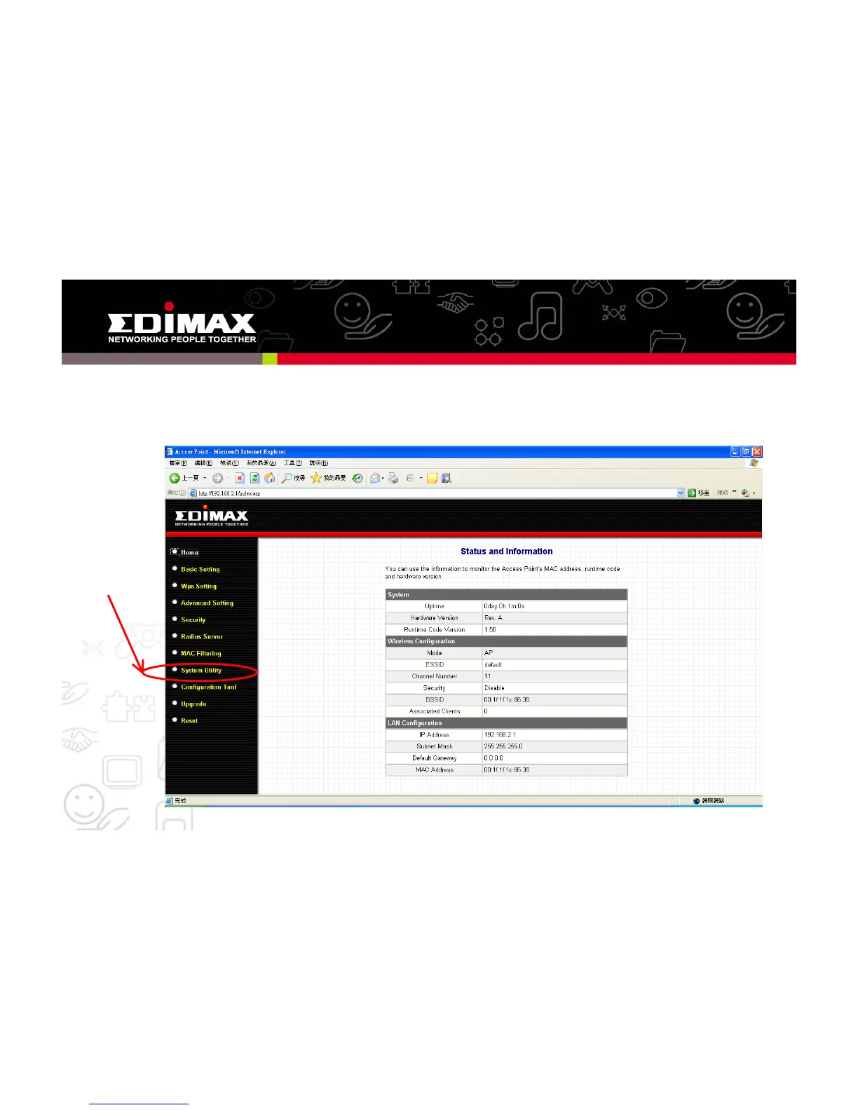 Connected to Edimax Access Points and select System Utility