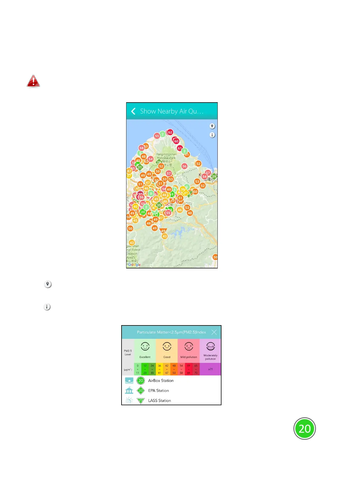 Tap will display the air quality level of PM2.5 (in a chart) and information