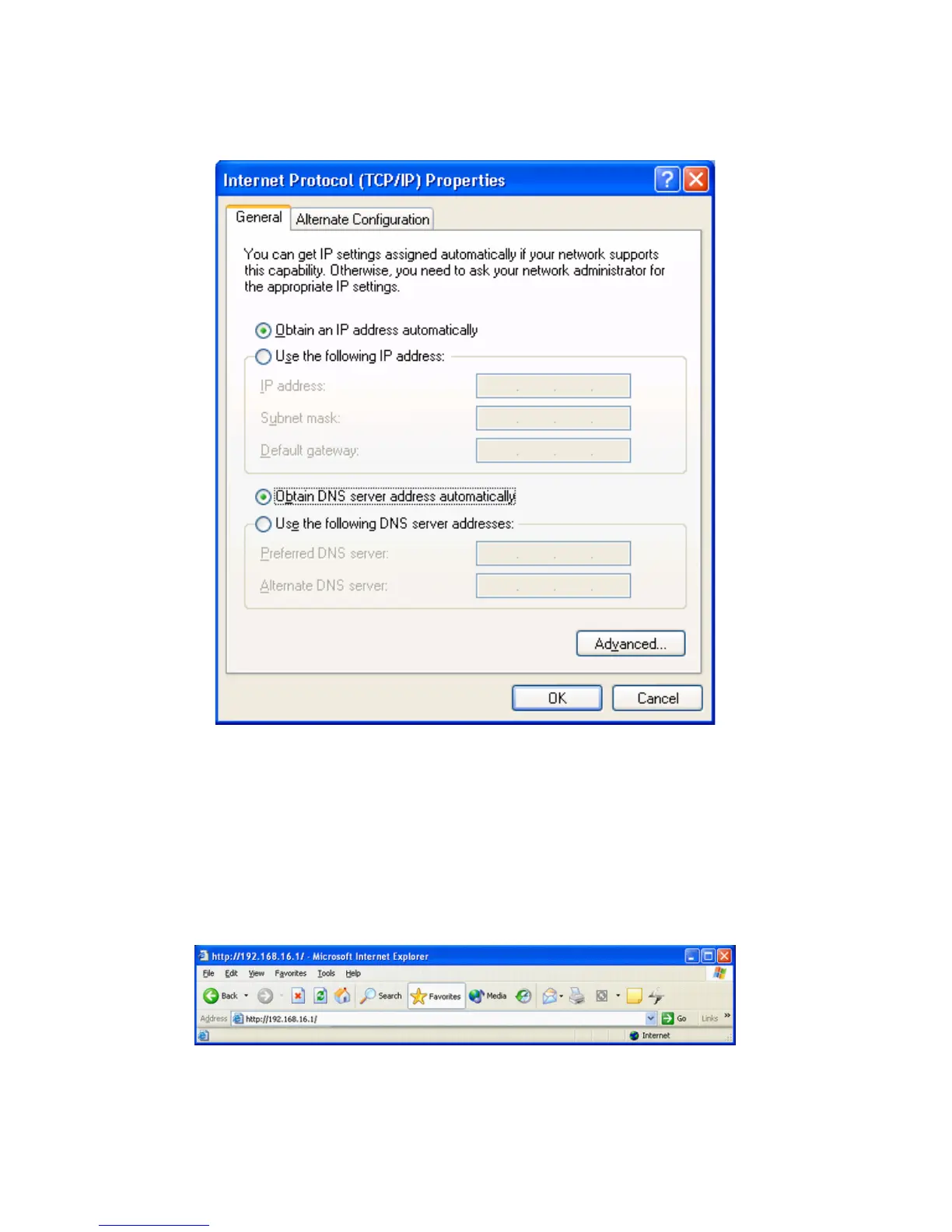 1. Aprire il browser web e digitare http://192.168.16.1 nella