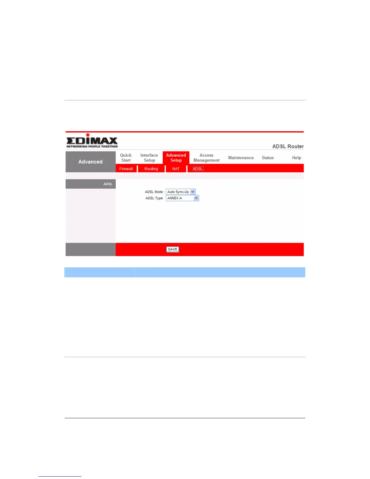 ADSL Mode The default setting is “Auto Sync-Up”. This mode will