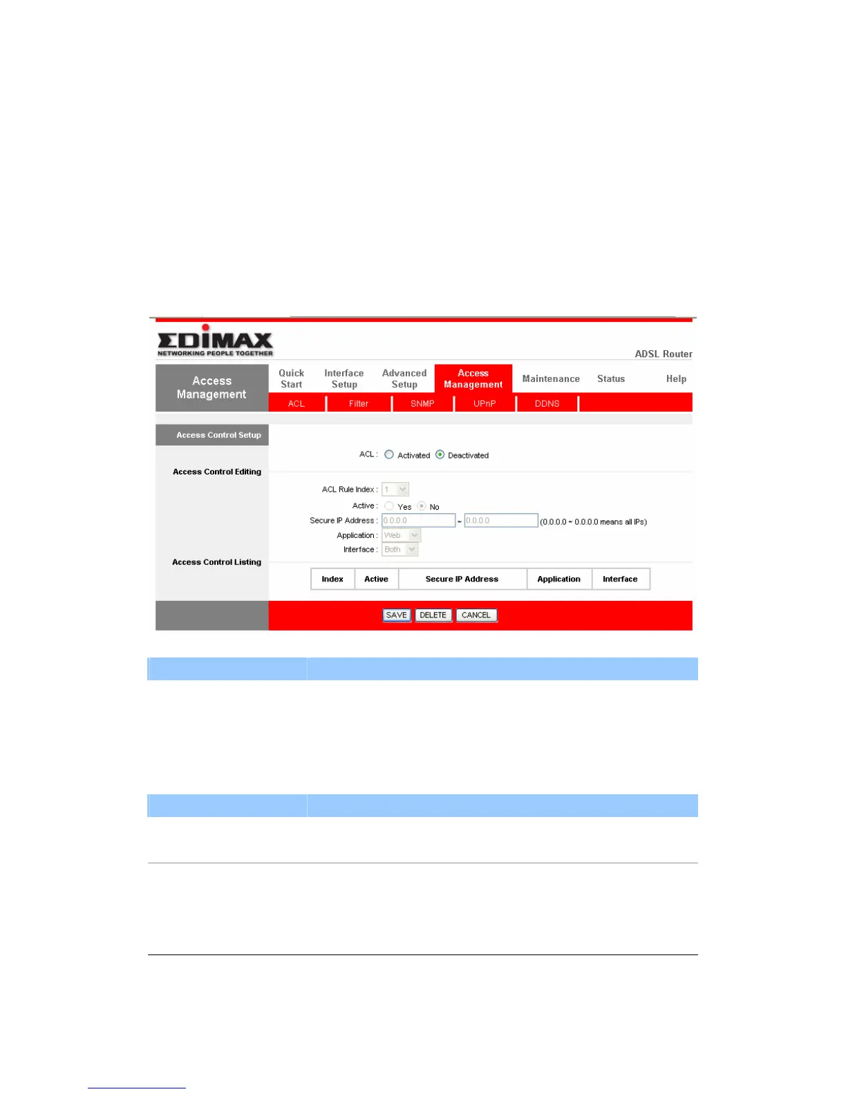 ACL Activate or deactivate the Access Control function. When