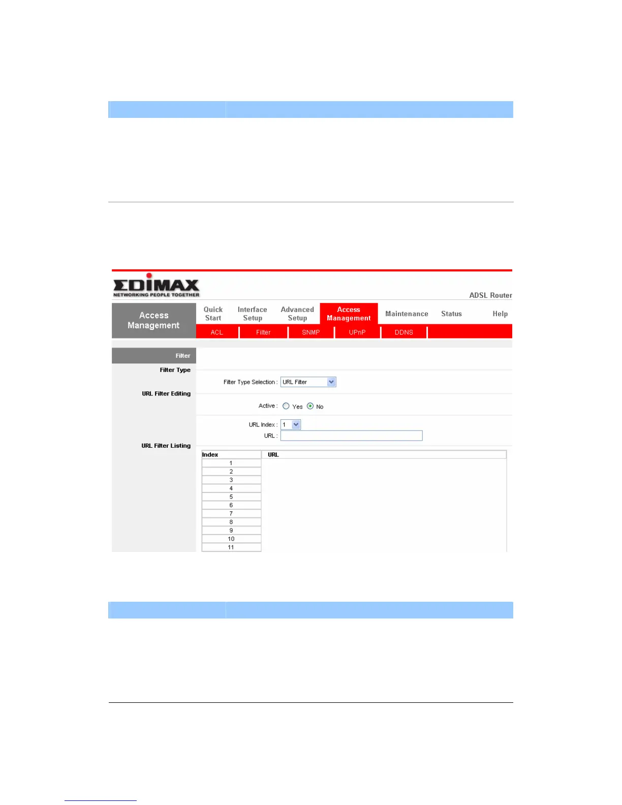 Active Activate or deactivate the URL filter.