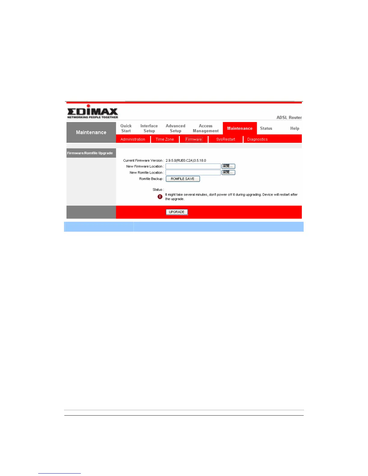Romfile Backup To save the current settings as a backup file, please click