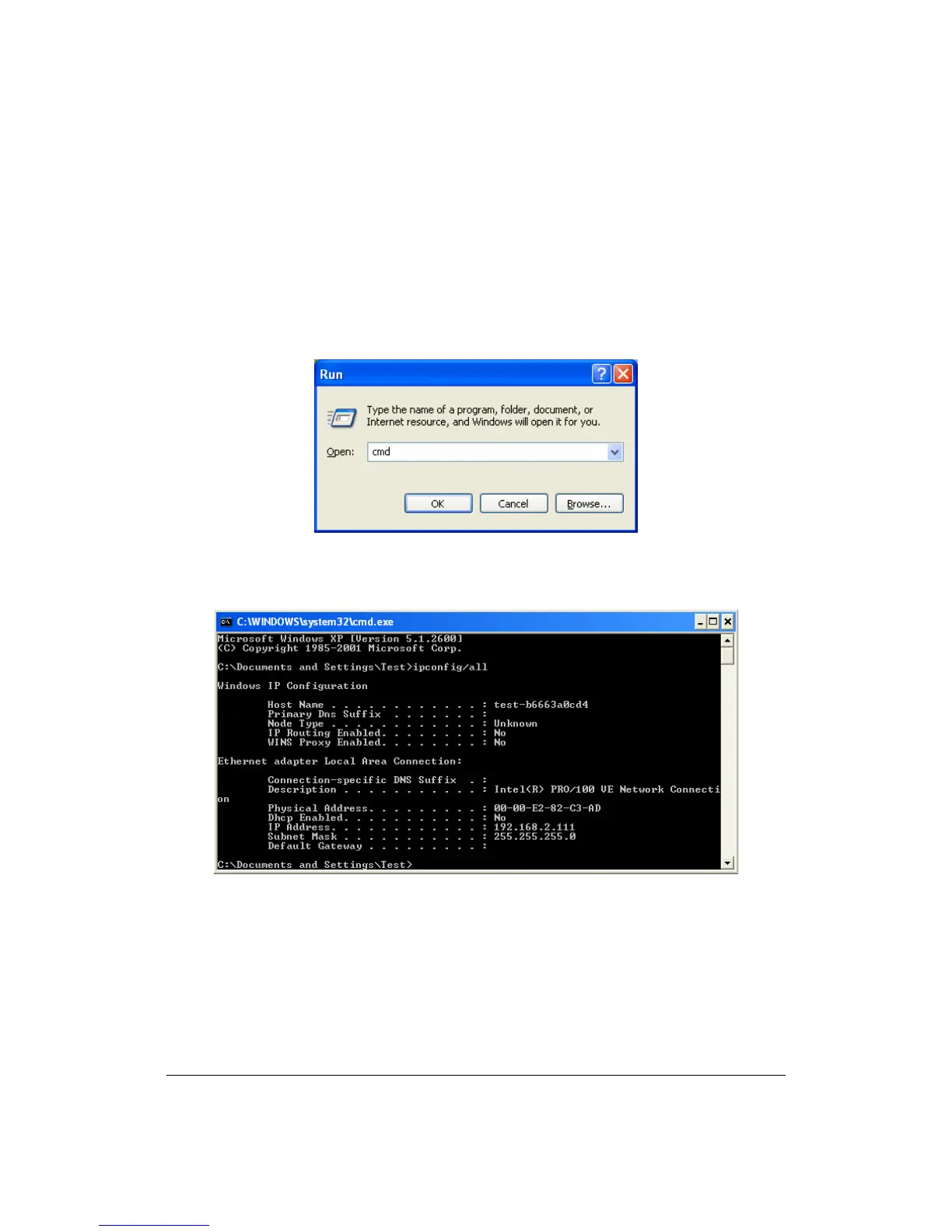 z Your PC’s MAC Address is the one entitled Physical Address (00-00-E2-82-
