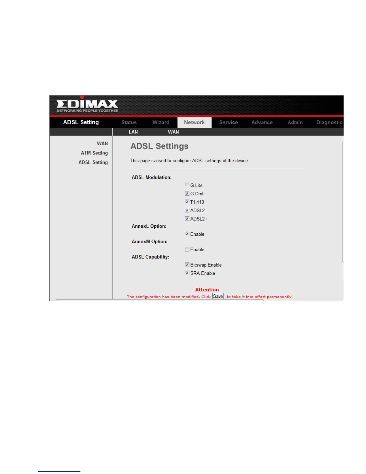 can select the DSL modulation. Mostly, the user just need to remain this factory default