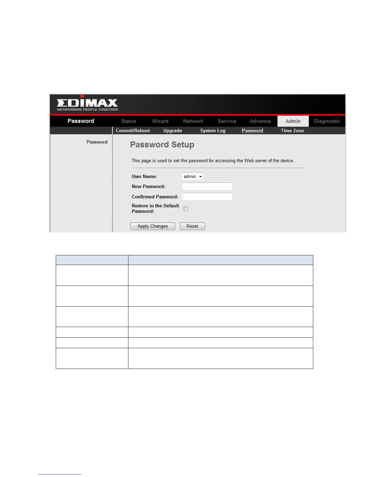 Click Password in the sub-menu to open the screen of Fig 3.7.3. In this page, you can