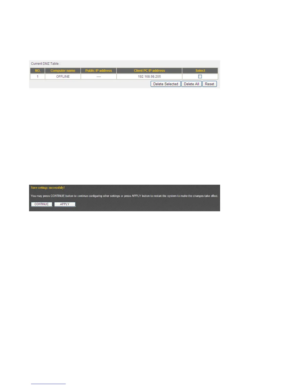 IfyouwanttodeleteaspecificDMZentry,checkthe‘select’boxoftheDMZentryyouwant