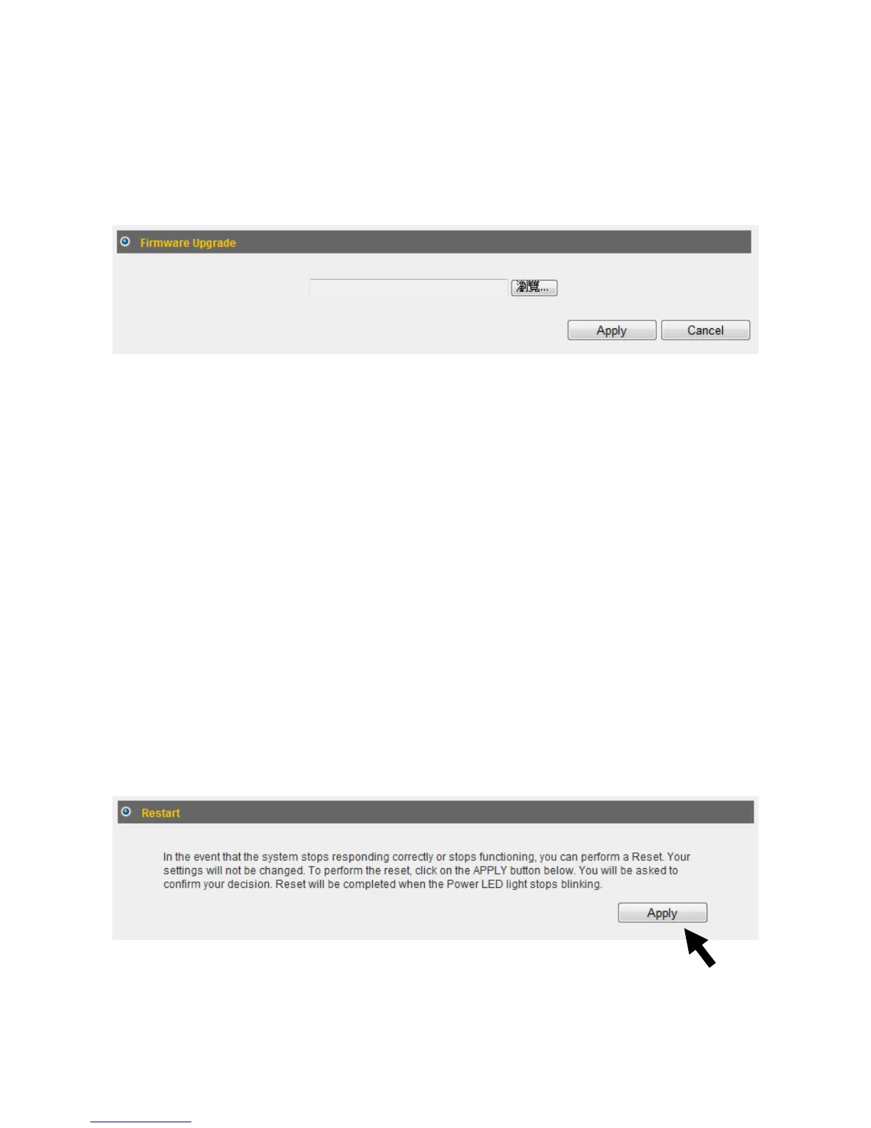 2. Clickthe“Apply”buttontorestartthebroadbandrouter.