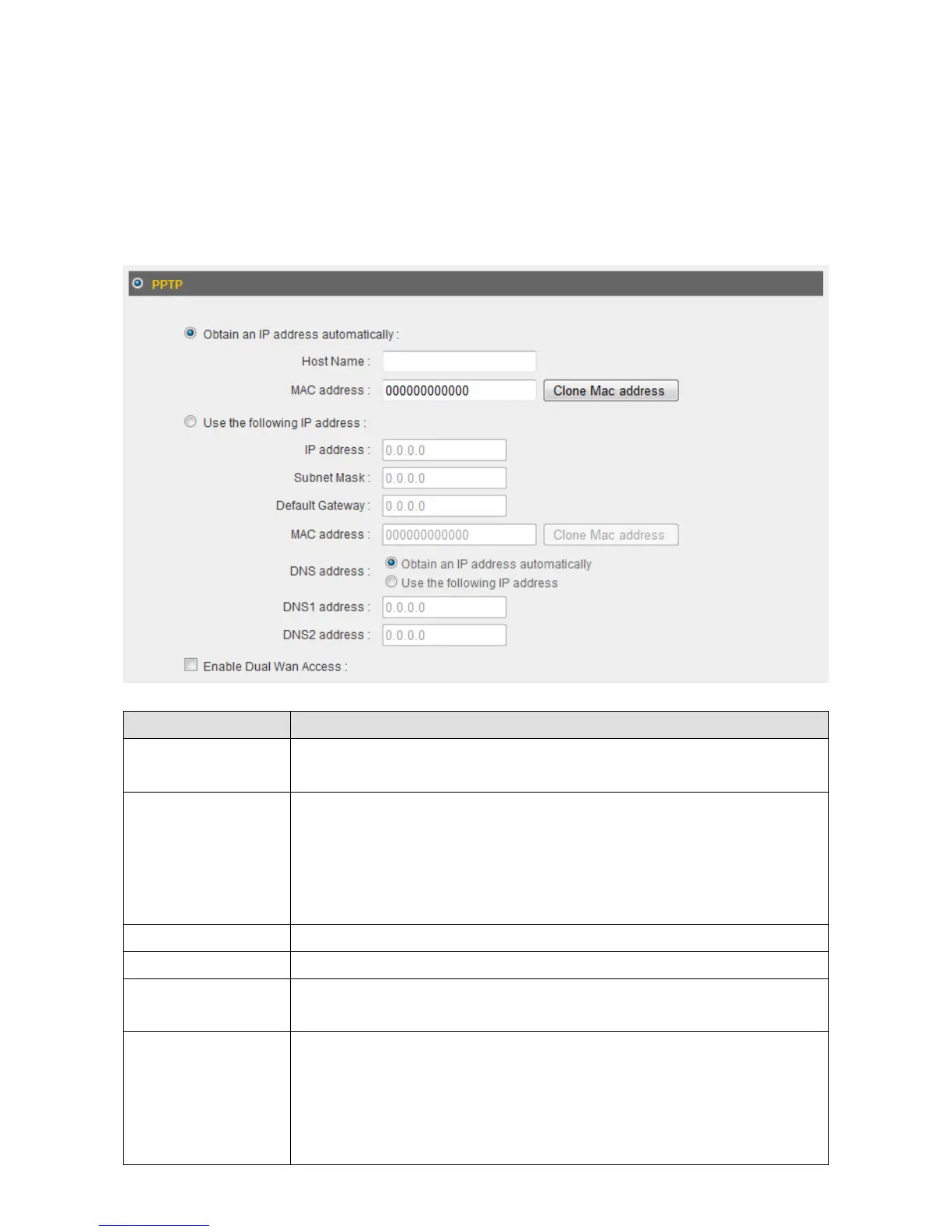 Select“PPTP”ifyourISPisproviding youInternetaccessviaPPTP(Point‐to‐Point