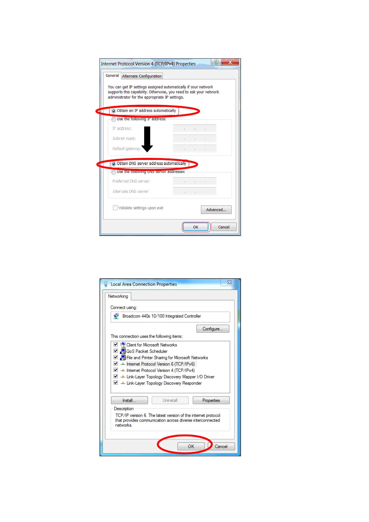 7. “Obtain an IP address automatically” and “Obtain DNS server address