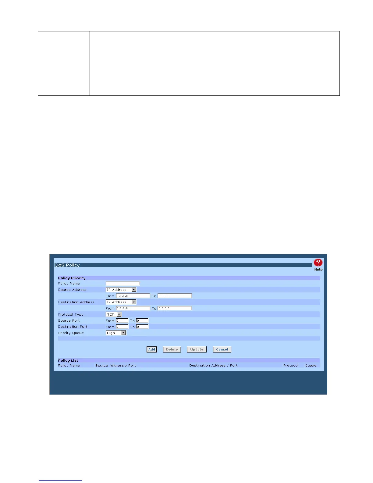 • Overwrite policy priority – Choose “yes” to set the priority of TOS field in IP