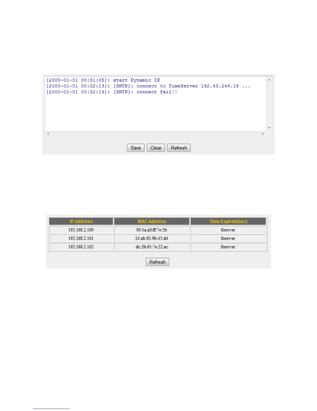 ThispageshowsallcurrentDHCPclients. Youcanclick“Refresh”toreloadthelist.
