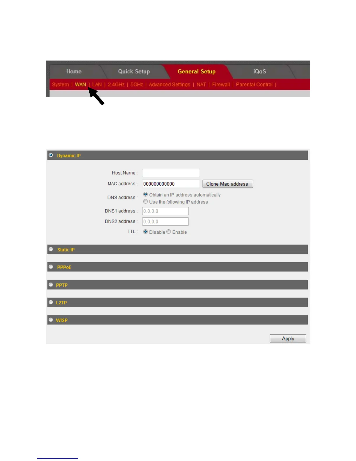YoucansetupyourInternetorWAN(WideAreaNetwork)connectionunder“WAN”.
