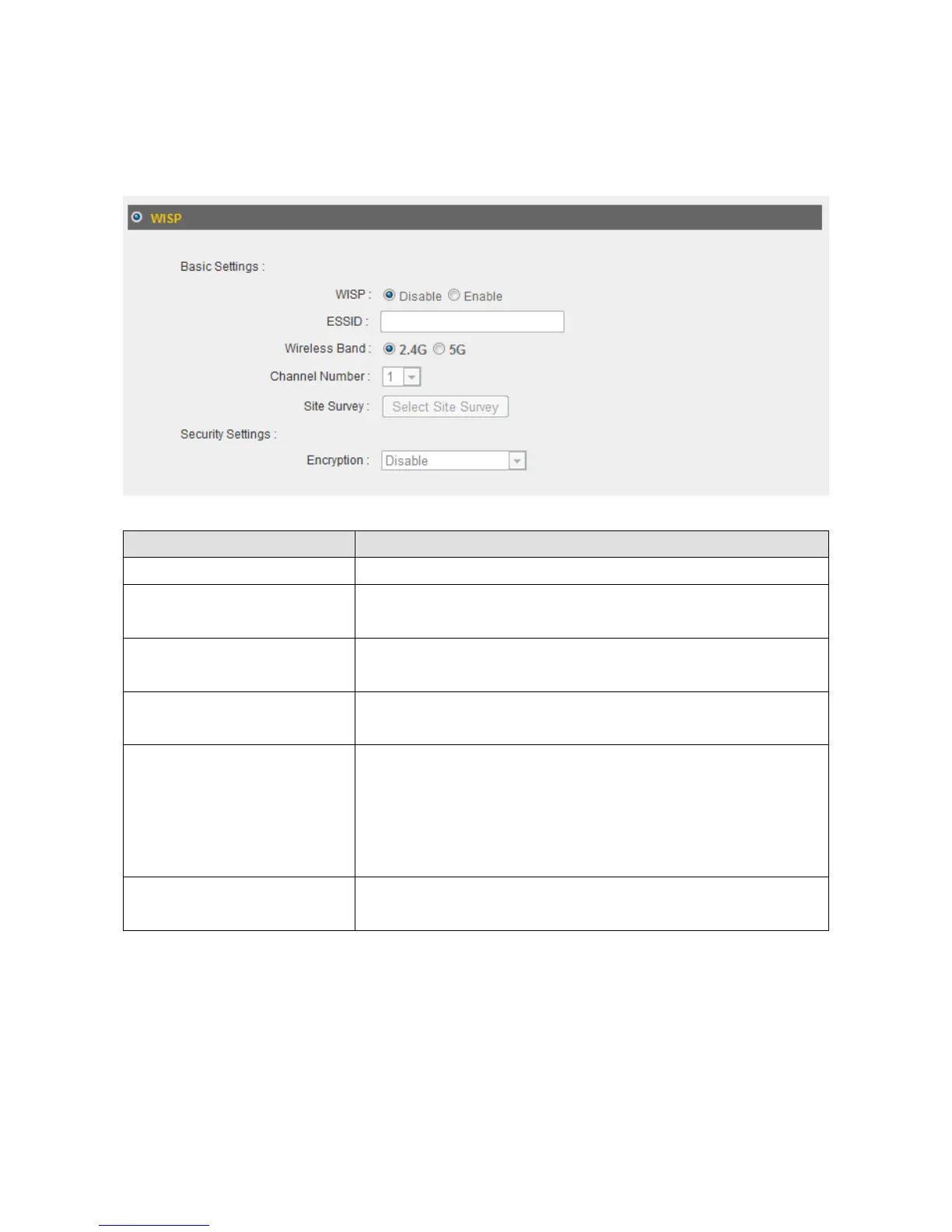 WISP EnableordisabletheWISPfunction.