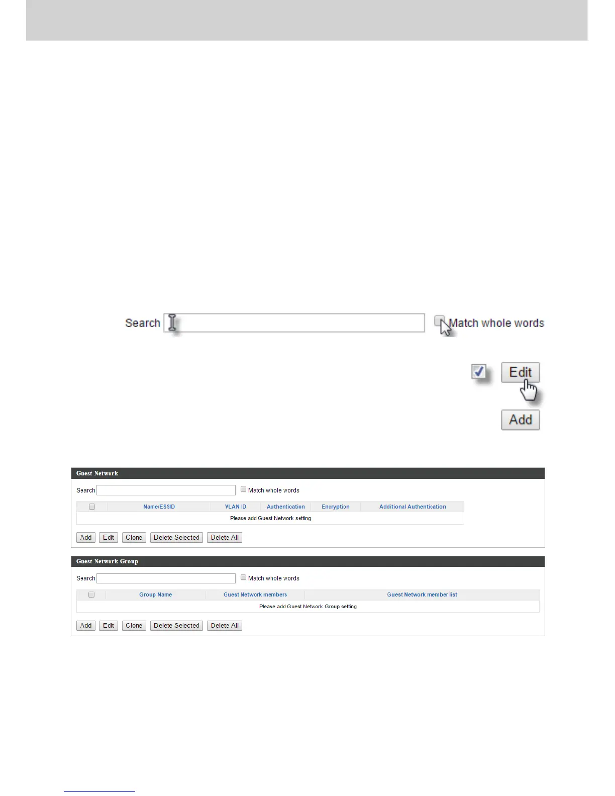 Guest Network Groups and allows you to add or edit Guest Network and