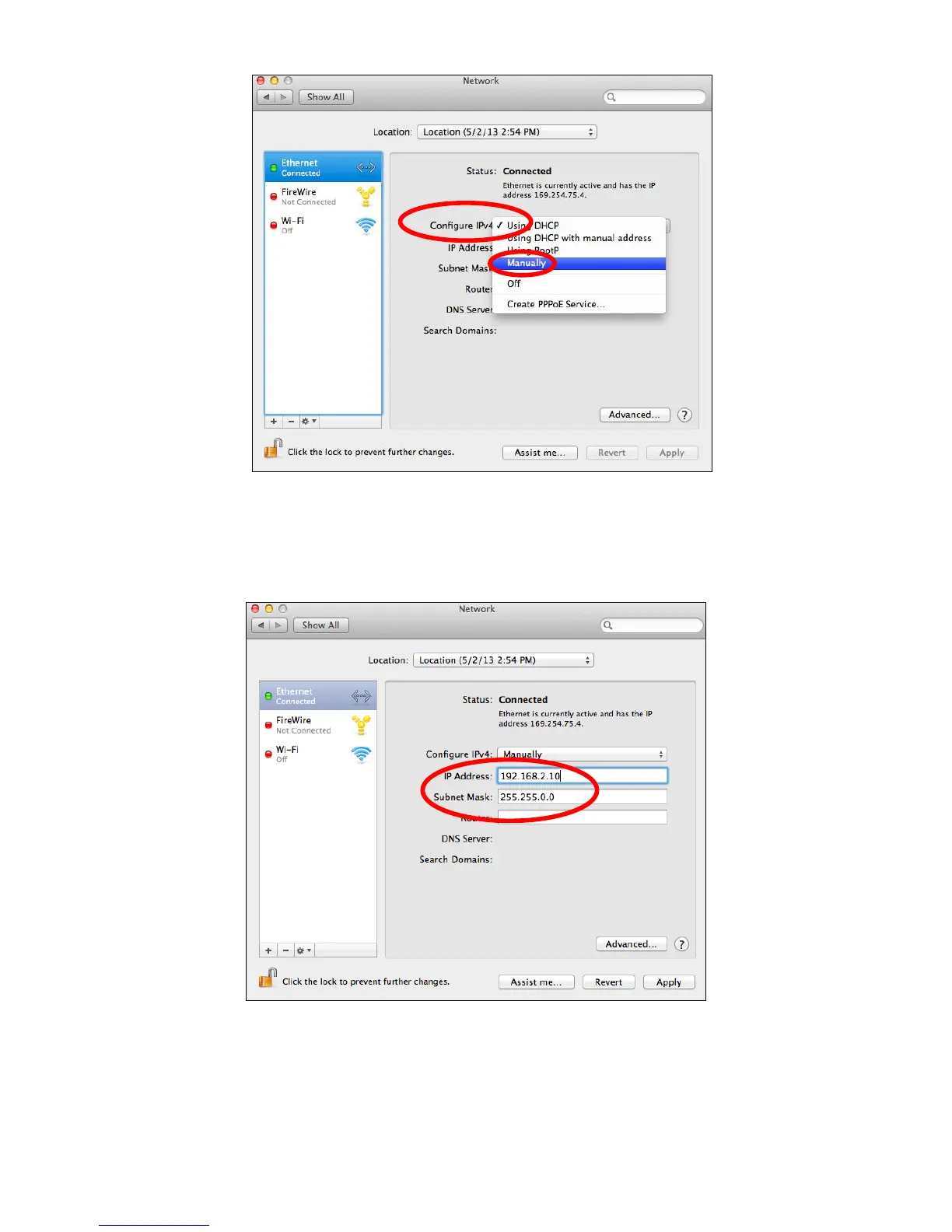 5. Enter the IP address 192.168.2.10 and subnet mask 255.255.255.0. Click