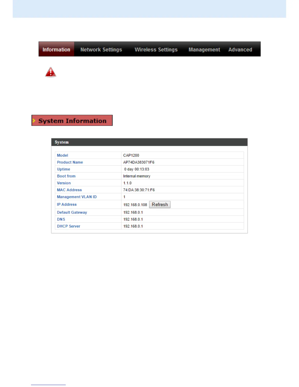 Edimax CAP1200 - IV-1. Information; IV-1-1. System Information
