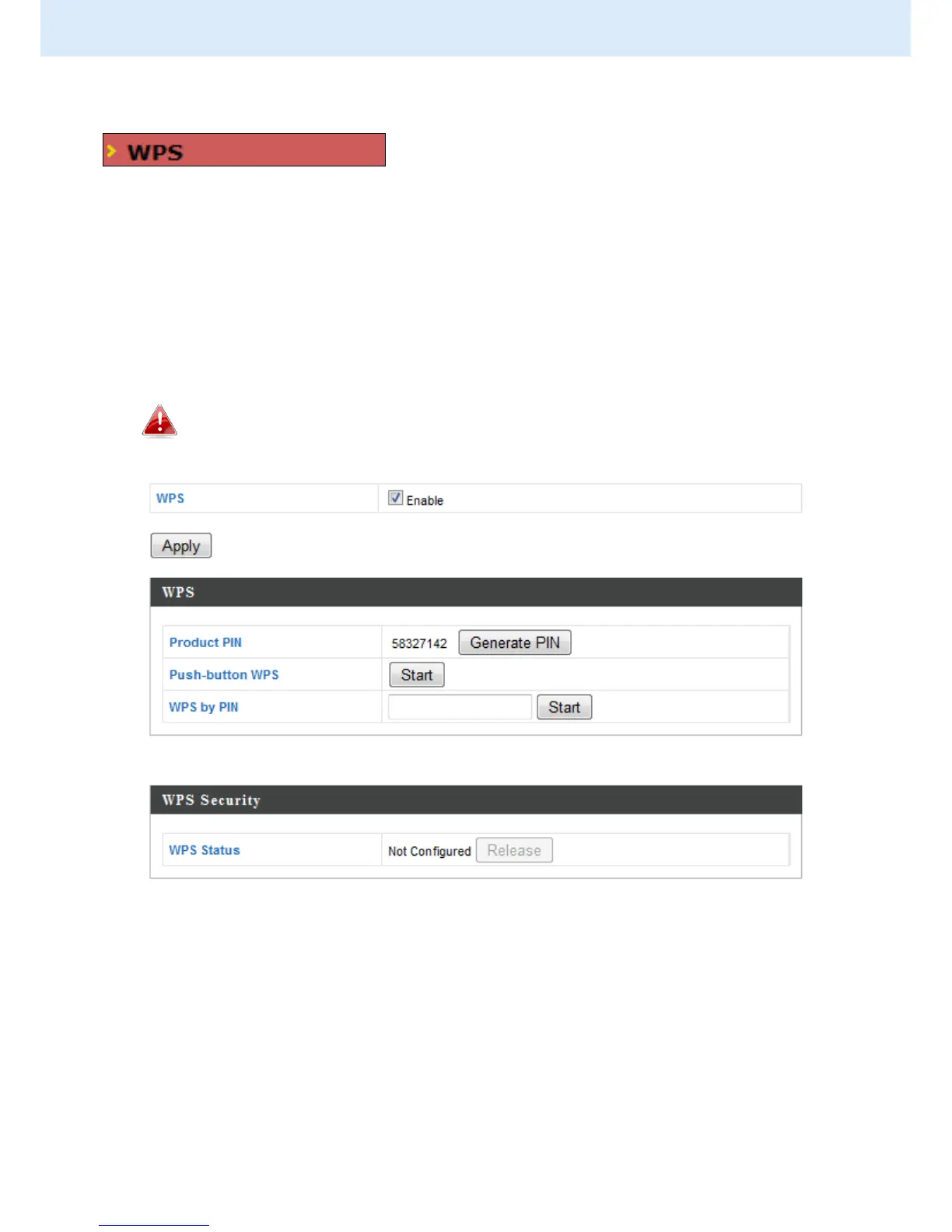 interface (known as PBC or “Push Button Configuration”). When WPS is