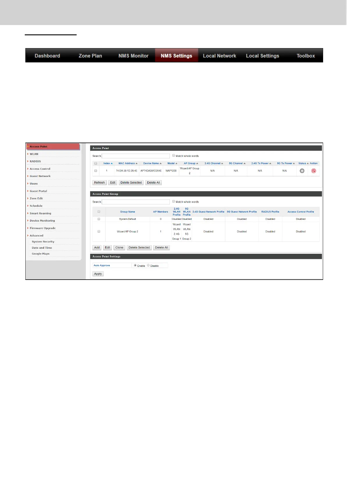 WLAN, RADIUS & guest network settings as well as upgrade firmware across