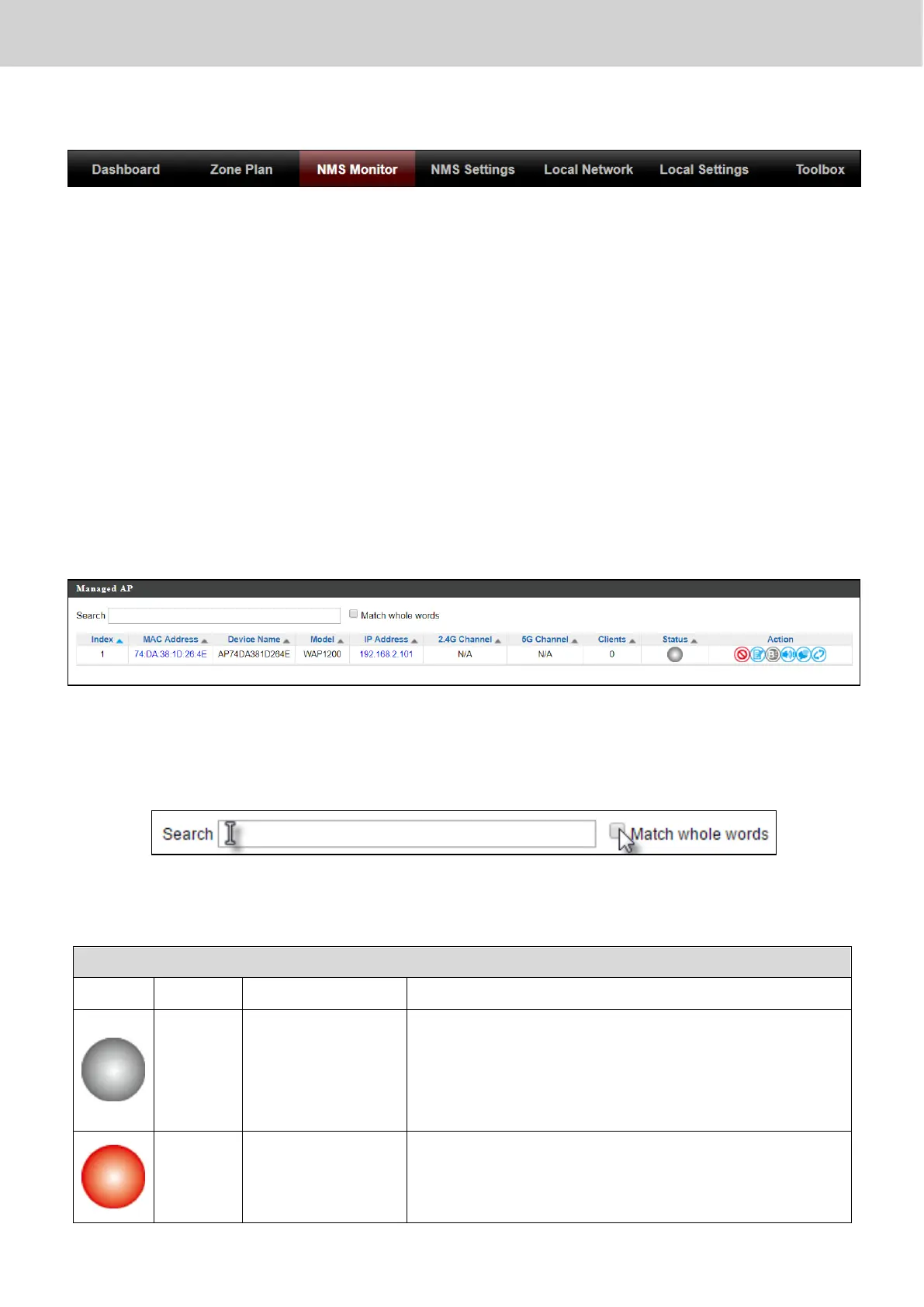 (reference number), MAC Address, Device Name, Model, IP Address, 2.4GHz &