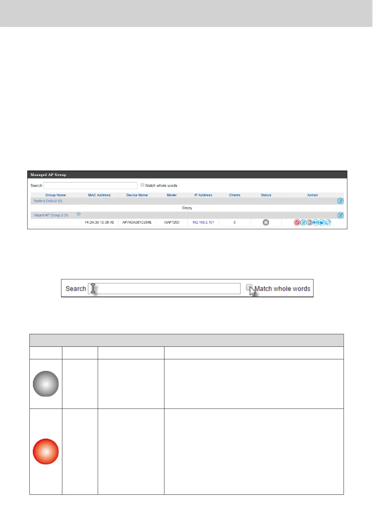 The Status icon displays the status of each Managed AP.