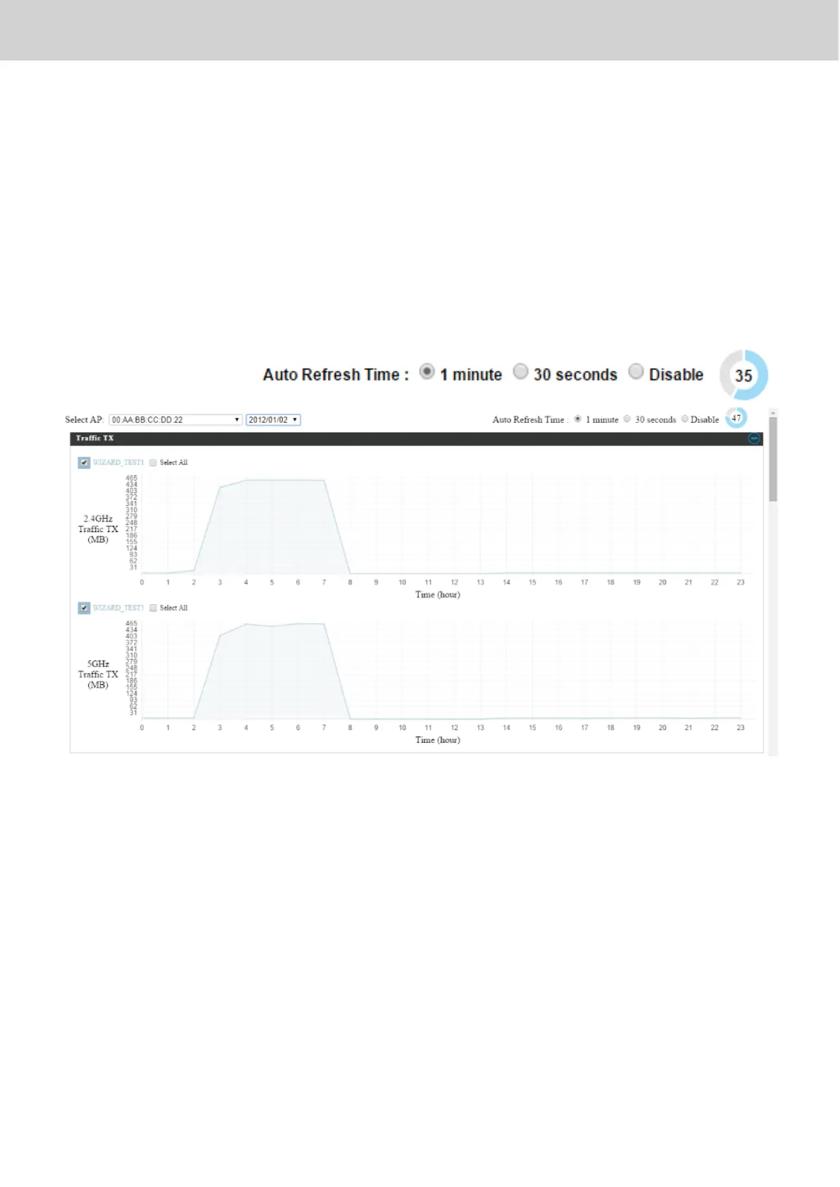 2.4GHz & 5GHz: Traffic Tx (data transmitted in MB), Traffic Rx (data received