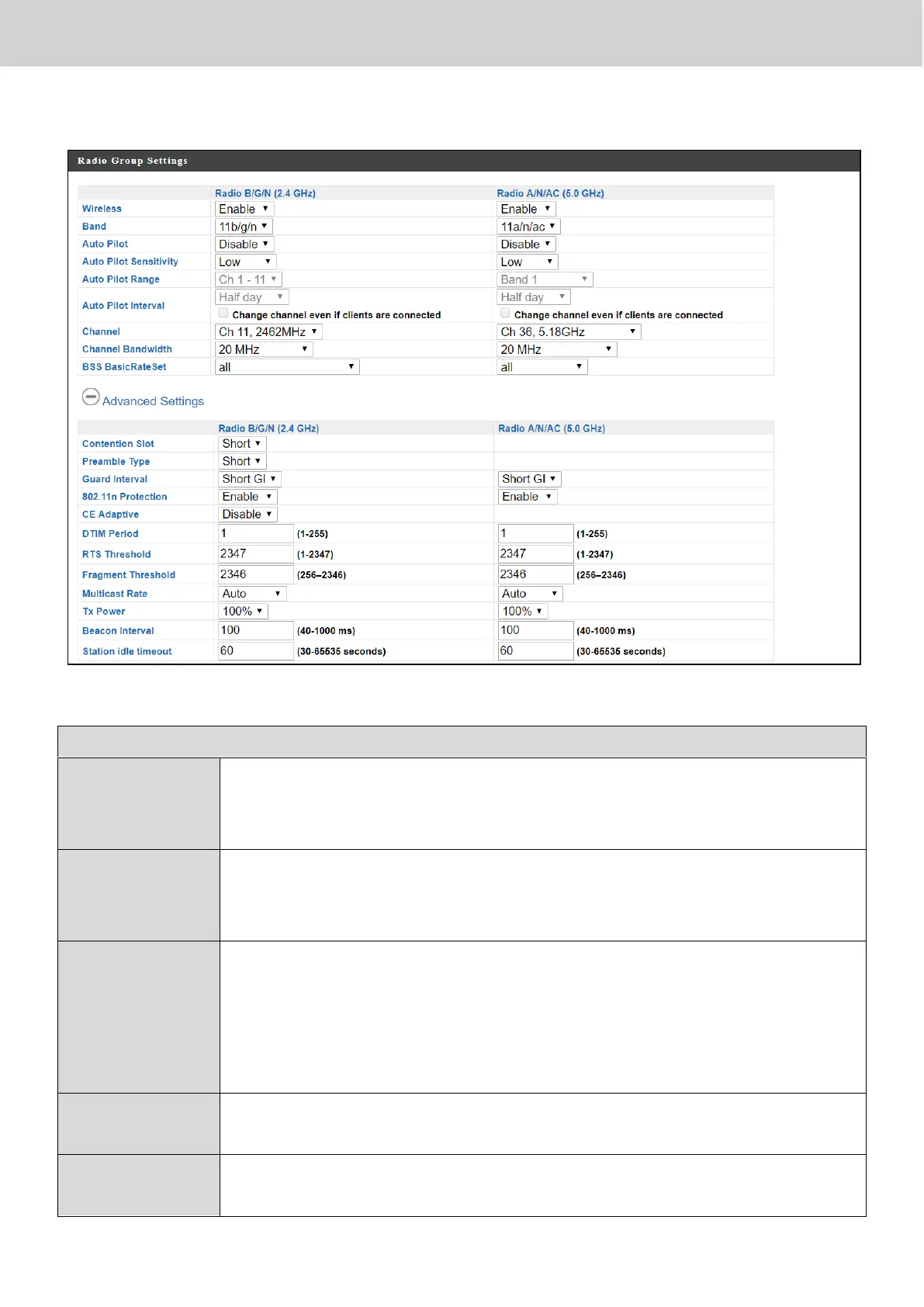 wireless radio. When disabled, no SSIDs on that frequency will